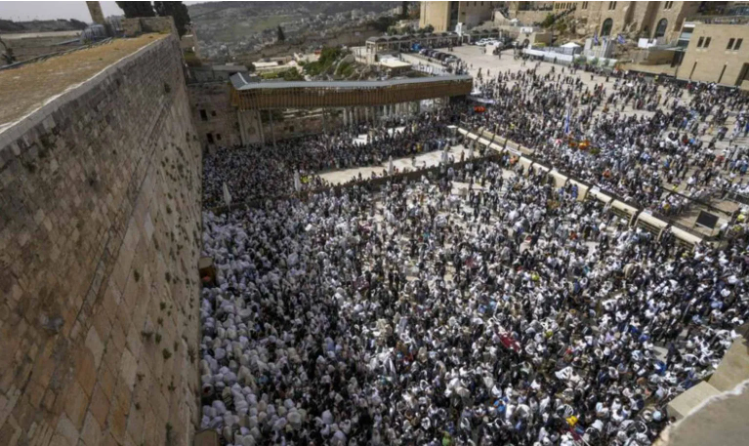 Na segunda-feira (18), milhares de judeus se reuniram no Muro das Lamentações, o local mais sagrado onde os judeus podem rezar na Cidade Velha de Jerusalém, para a bênção sacerdotal em Jerusalém.