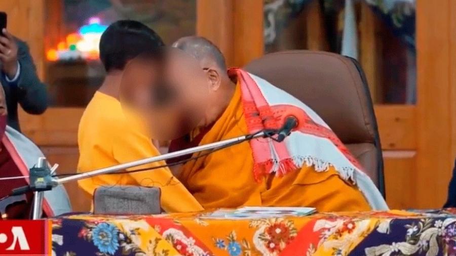 Viralizou nas redes sociais um vídeo em que o líder budista tibetano Dalai Lama aparece dando um beijo na boca de uma criança, menino, e na sequência põe a língua para fora e pede para que o garoto a “chupe”.